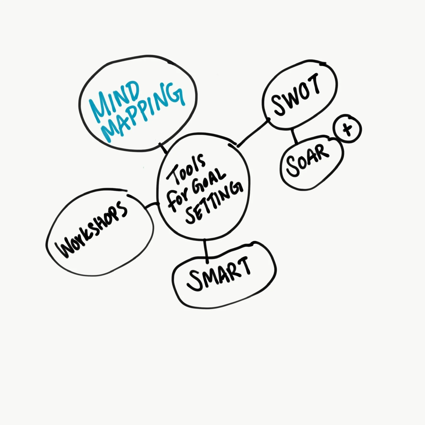 The start of a mind map for tools for goal setting.